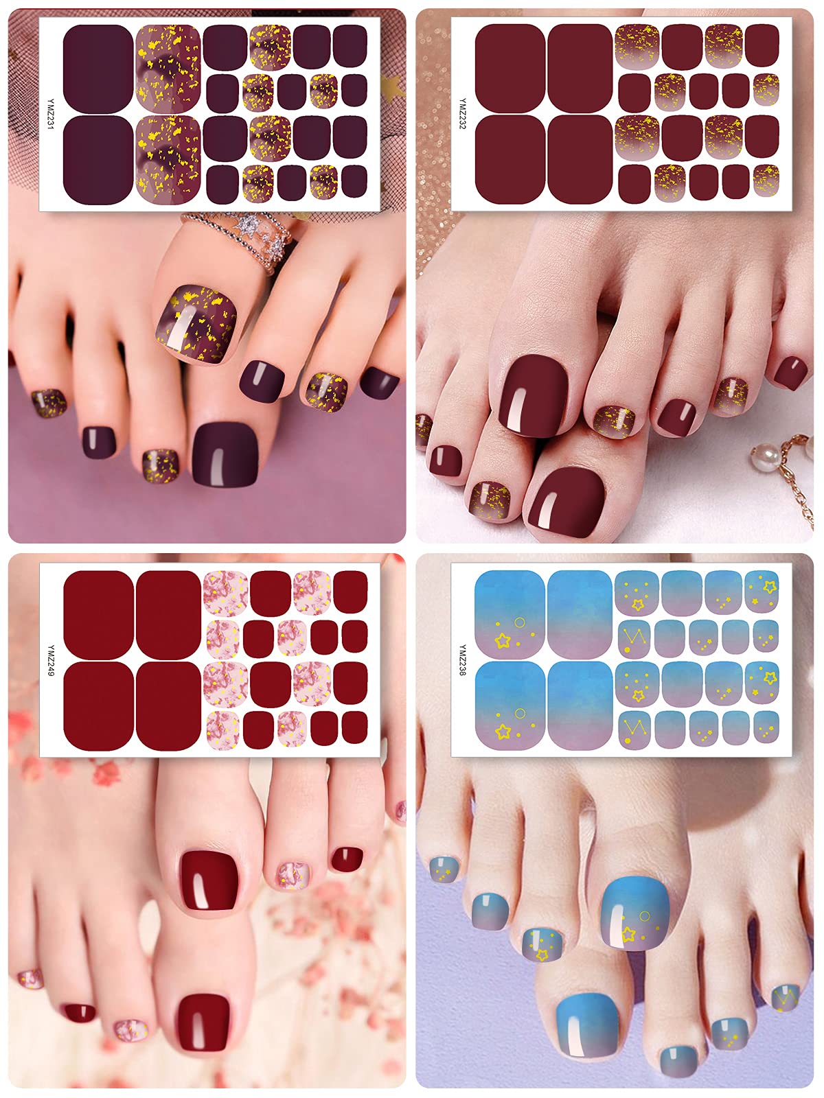 Ebanku 20 Blatt Selbstklebend Fussnagel Sticker Fussnagel Vollabdeckung Zehennagellack Aufkleber Nagelsticker Kunst Sticker Nail Art Tattoos Nagel Abziehbilder Mit 1 Stucke Nagelfeilen Amazon De Kosmetik